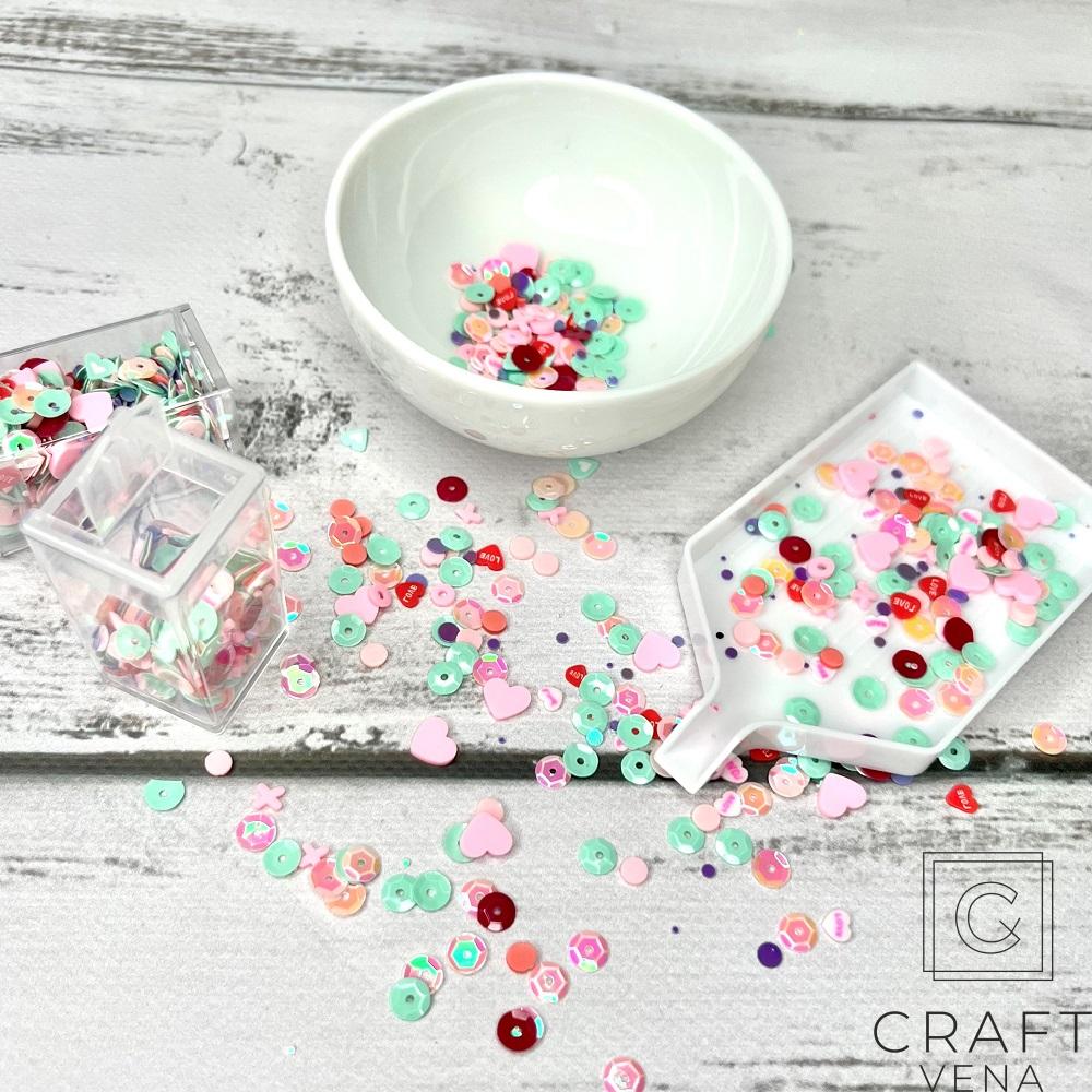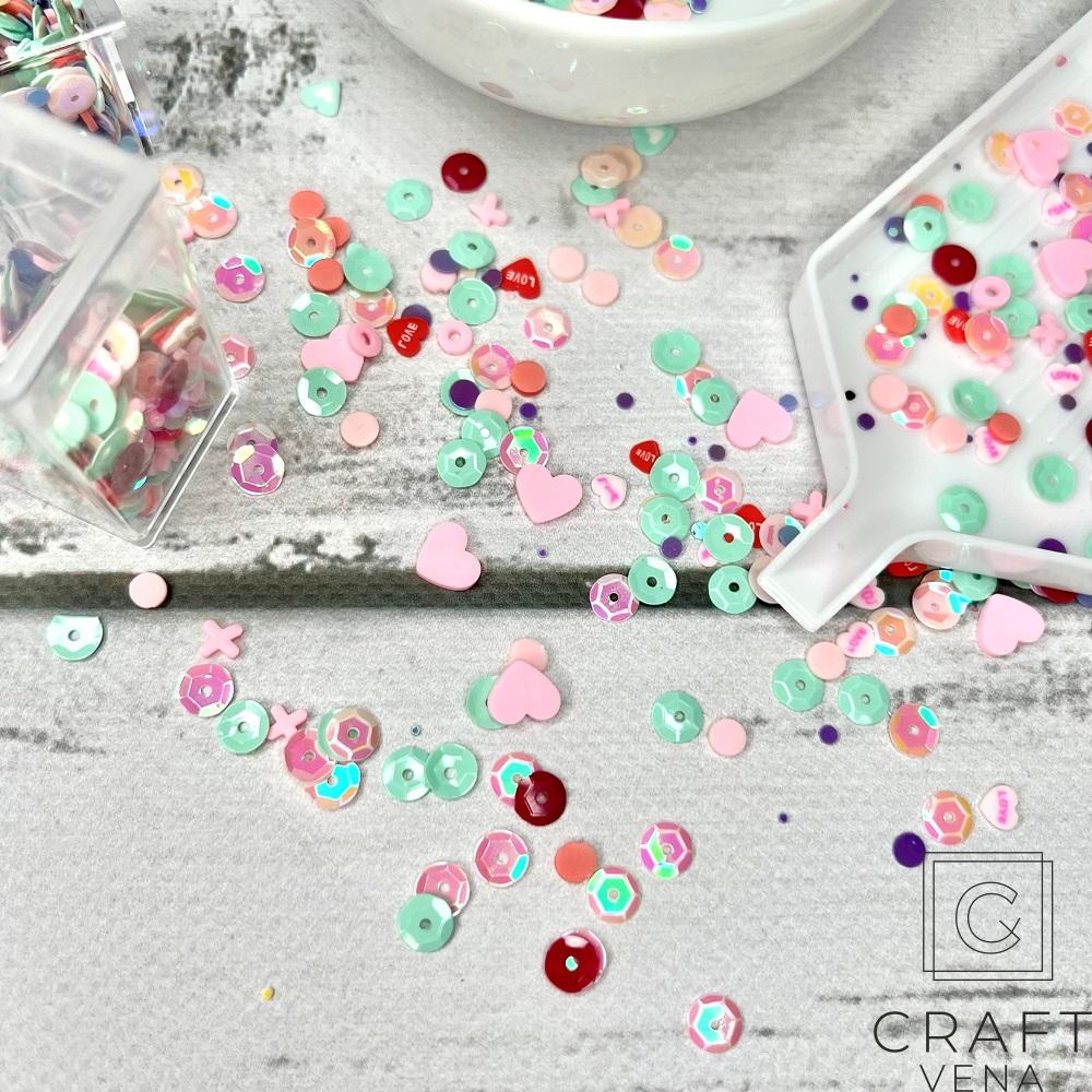 W tym zestawie znajdziesz m.in. serduszka, cekiny, kółka, X