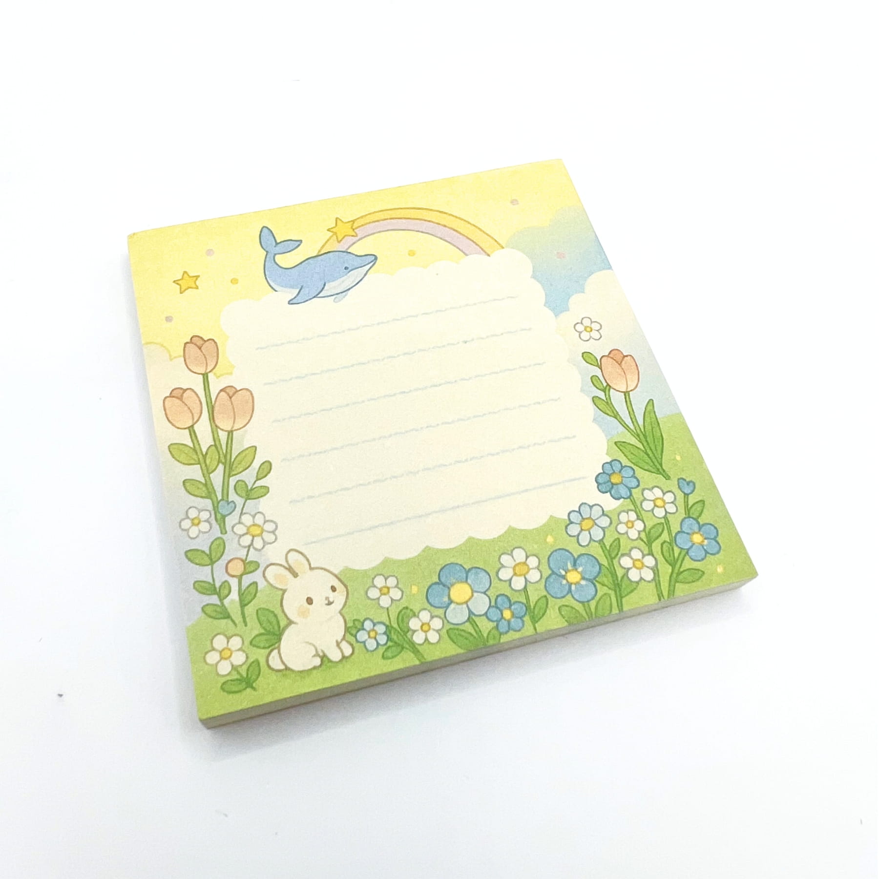 Kolorowe karteczki przylepne o wymiarze 7,5x7,5 cm, 50 arkuszy w bloczku. Z motywem kwiatów, idealne do notatek, planowania i ozdabiania.