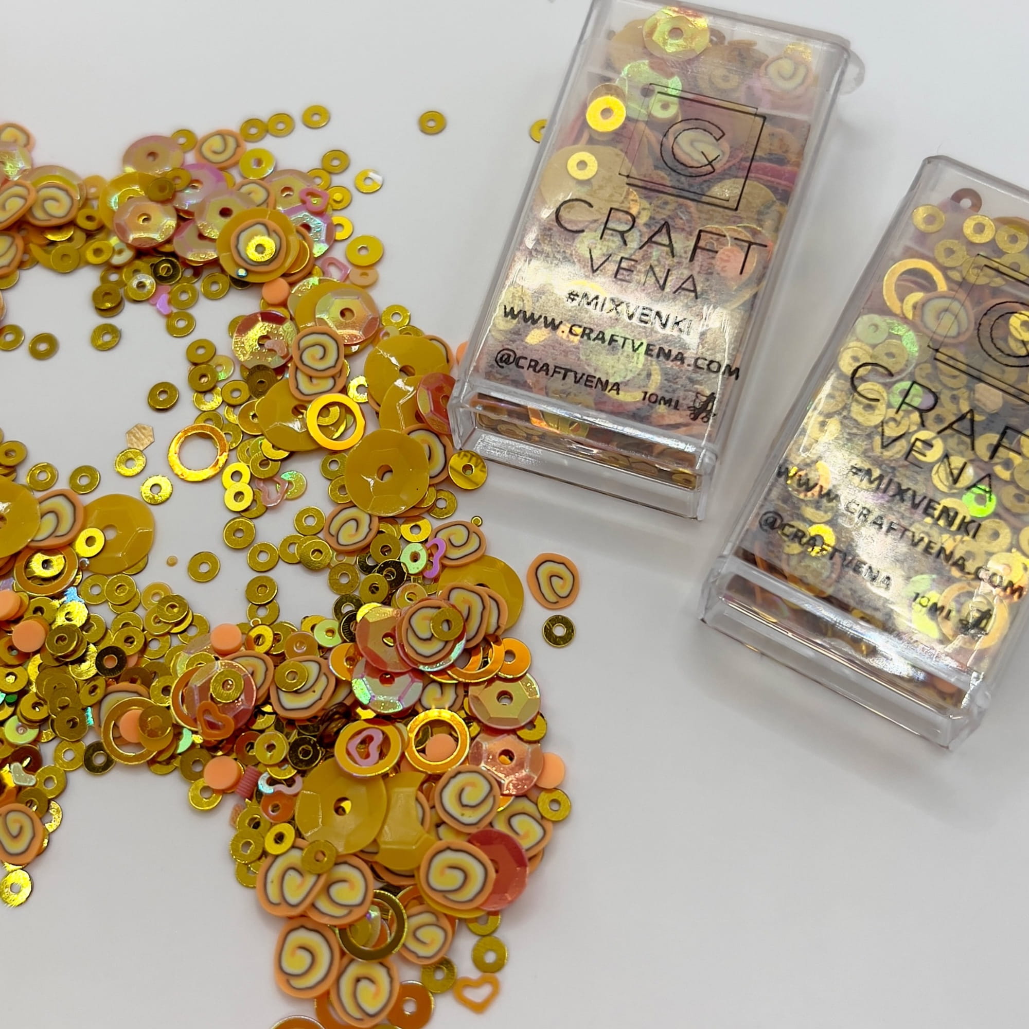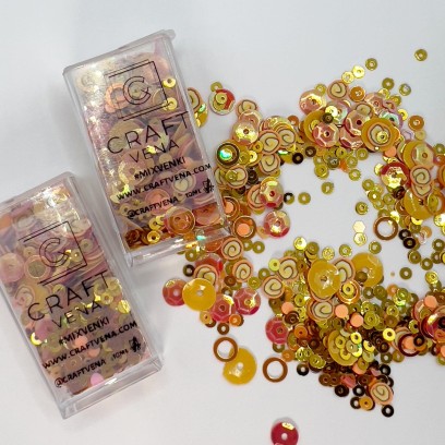 Mixvenki to autorskie mieszanki ozdobne stworzone przez Craftvena. W każdym opakowaniu znajdziesz starannie dobrany zestaw cekinów, drobnych elementów dekoracyjnych, a czasem także pereł i kryształków. Dzięki temu Mixvenki pięknie mienią się w świetle i dodają projektom lekkości, blasku oraz wyjątkowego charakteru. To wyjątkowy produkt stworzony z myślą o osobach, które kochają kreatywne rękodzieło i journaling.