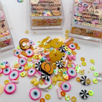Mixvenki to autorskie mieszanki ozdobne stworzone przez Craftvena. W każdym opakowaniu znajdziesz starannie dobrany zestaw cekinów, drobnych elementów dekoracyjnych, a czasem także pereł i kryształków. Dzięki temu Mixvenki pięknie mienią się w świetle i dodają projektom lekkości, blasku oraz wyjątkowego charakteru. To wyjątkowy produkt stworzony z myślą o osobach, które kochają kreatywne rękodzieło i journaling.