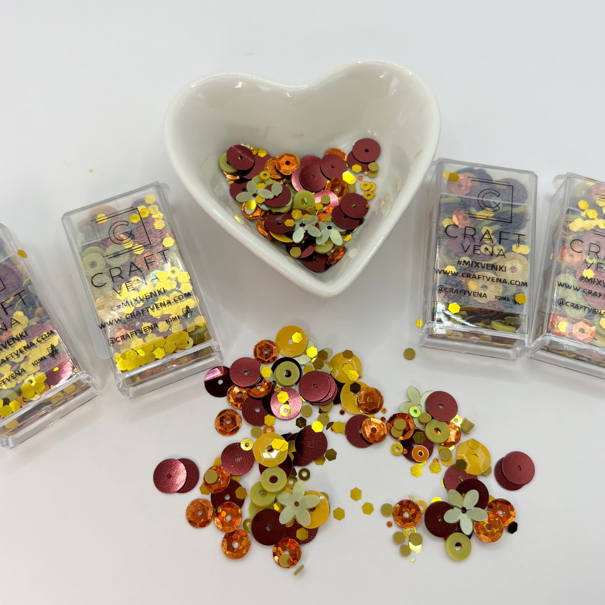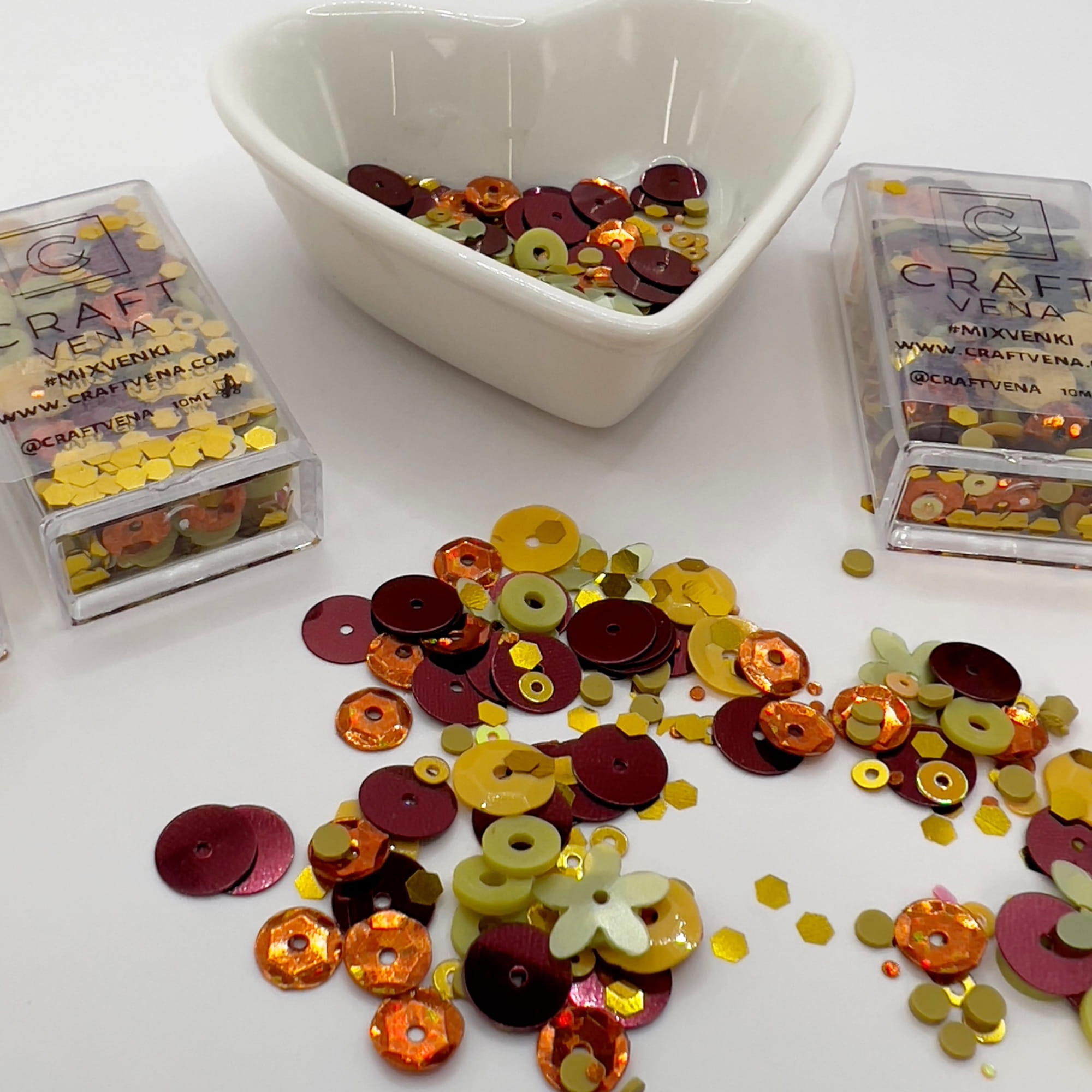 Mixvenki to autorskie mieszanki ozdobne stworzone przez Craftvena. W każdym opakowaniu znajdziesz starannie dobrany zestaw cekinów, drobnych elementów dekoracyjnych, a czasem także pereł i kryształków. Dzięki temu Mixvenki pięknie mienią się w świetle i dodają projektom lekkości, blasku oraz wyjątkowego charakteru. To wyjątkowy produkt stworzony z myślą o osobach, które kochają kreatywne rękodzieło i journaling.