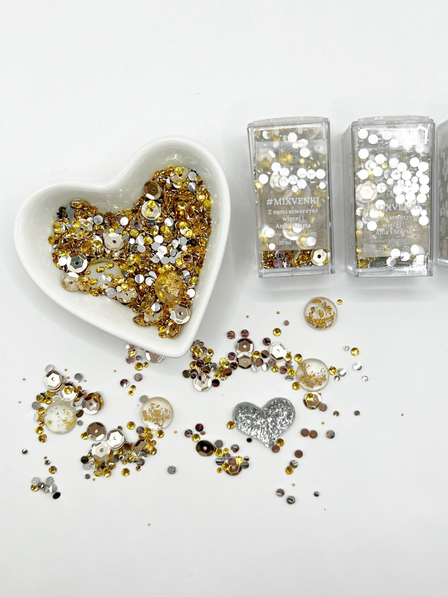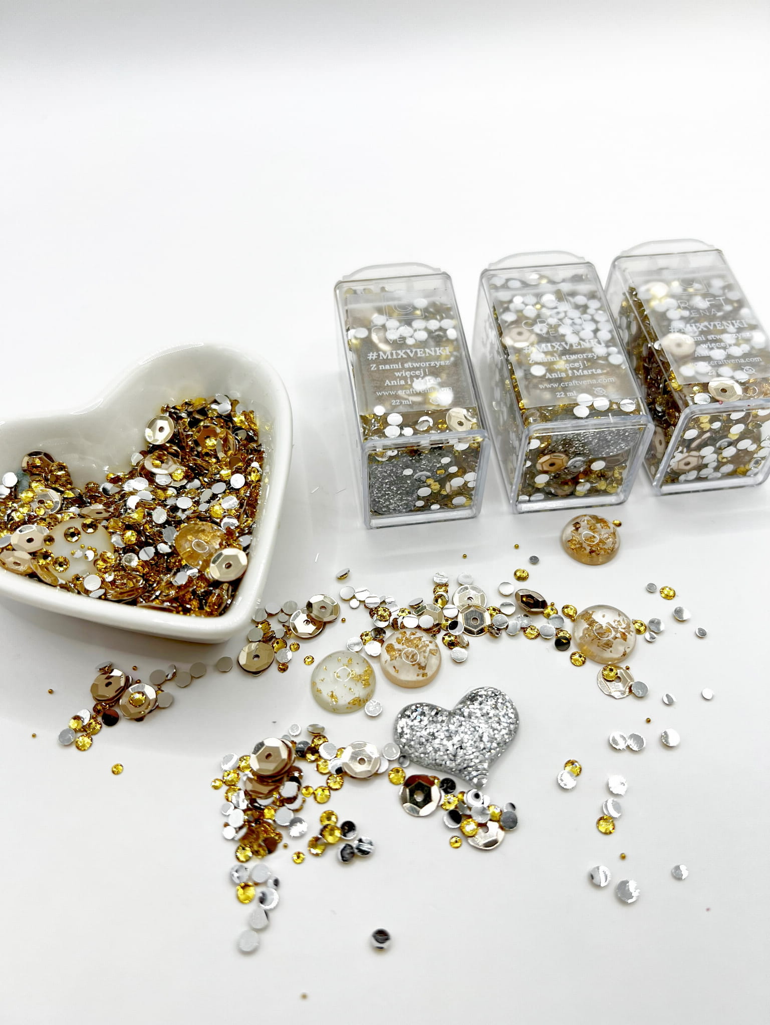 Mixvenki to autorskie mieszanki ozdobne stworzone przez Craftvena. W każdym opakowaniu znajdziesz starannie dobrany zestaw cekinów, drobnych elementów dekoracyjnych, a czasem także pereł i kryształków. Dzięki temu Mixvenki pięknie mienią się w świetle i dodają projektom lekkości, blasku oraz wyjątkowego charakteru. To wyjątkowy produkt stworzony z myślą o osobach, które kochają kreatywne rękodzieło i journaling.