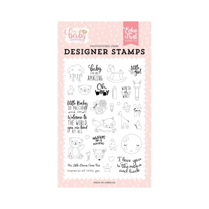 Zestaw dziecięcych stempli Echo Park – Hello Baby zawiera 31 elementów na blistrze o wymiarach 10 × 14,5 cm. Idealny do tworzenia kartek, albumów i pamiątek z okazji narodzin dziecka oraz pierwszych chwil życia maluszka.