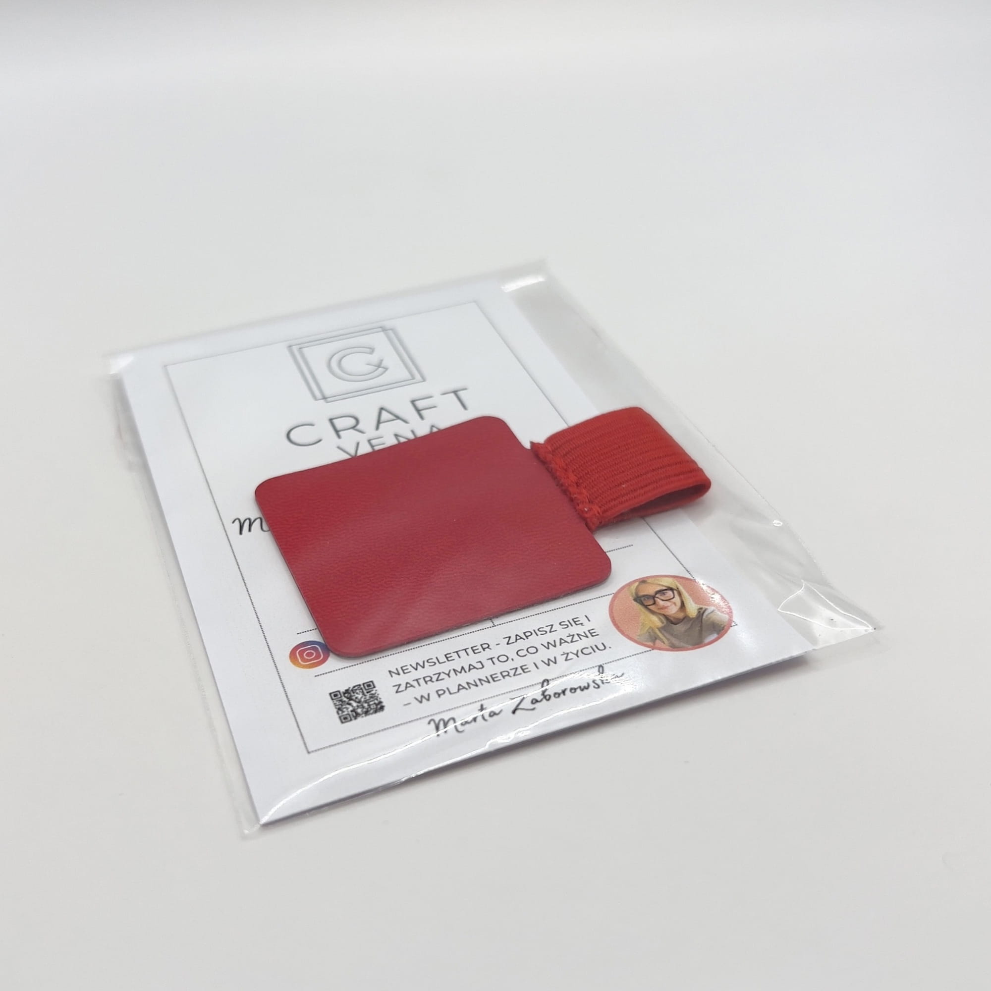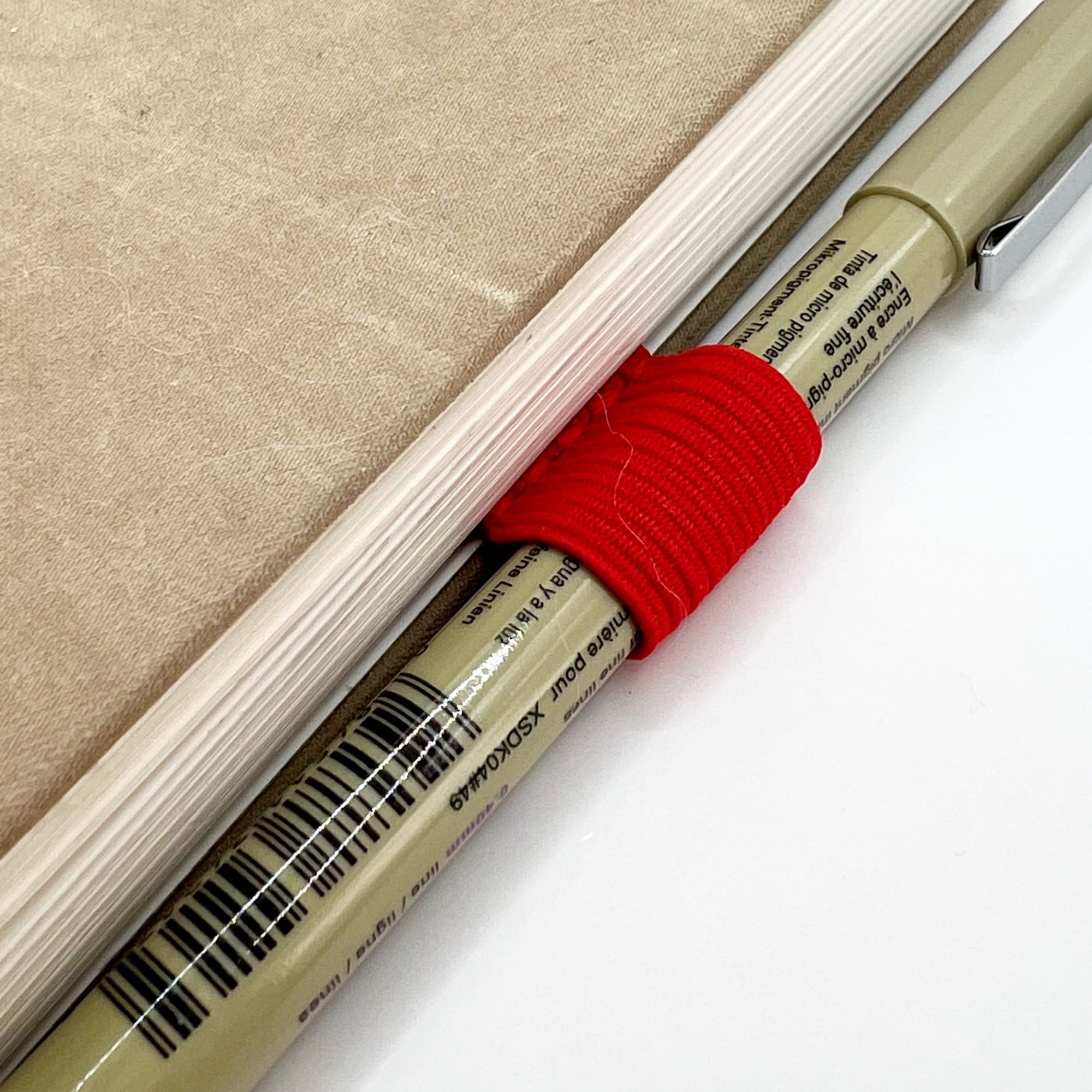 Uchwyt na długopis – samoprzylepny do notesu i planera | kwadrat, czerwony