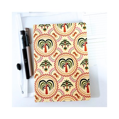 Zestaw journalingowy z włoskim notesem w miękkiej, fakturowanej okładce z motywem orientalnym (palmy, tygrysy). Notes posiada 160 stron w linię na eco papierze w odcieniu ivory (ok. 80 gsm). W zestawie: dwa cienkopisy, dwa bloczki 8×8 cm oraz biały organizer materiałowy zapinany na zamek, który mieści cały komplet. Idealny do codziennych notatek, pracy i journalingu.