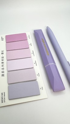 Zestaw papierniczy w odcieniach fioletu – idealny do planowania, nauki i journalingu. W komplecie: zakreślacz fioletowy, długopis z fioletowym wkładem oraz bloczek karteczek indeksujących w sześciu kolorach.