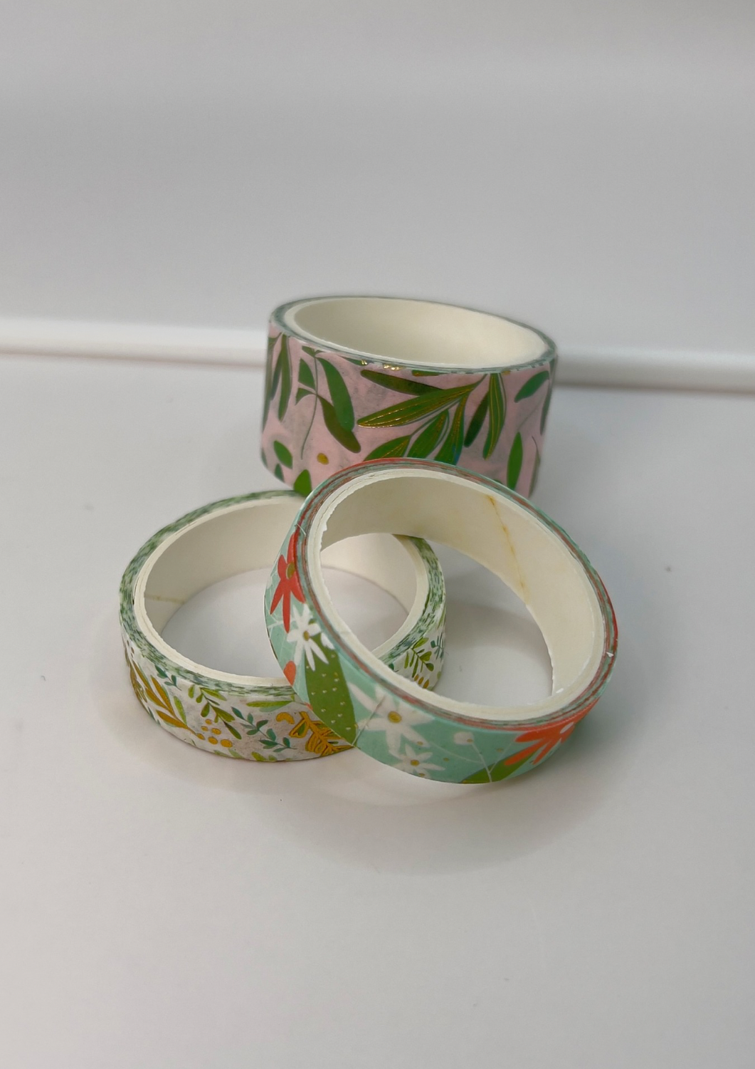 Zestaw 3 taśm washi o motywie kwiatowym. Rolki o długości 2 m i szerokości 10 mm, 10 mm, 19 mm. Idealne do journalingu, planowania, scrapbookingu i dekoracji.