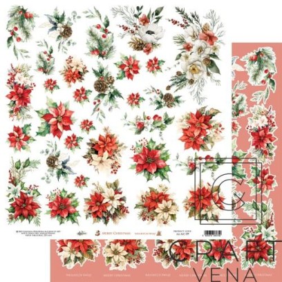 papier; do scrapbookingu; Art Alchemy; Merry Christmas; 30,5x30,5 cm wymiar, pojedynczy arkusz (do wycinania); czerwony, zielon